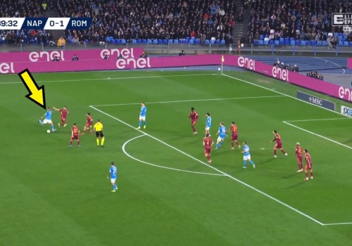 Remisem 1:1 zakończyła się pierwsza połowa meczu Napoli z AS Romą. Autorem efektownej bramki był Leonardo Spinazzola, który popisał się skutecznym strzałem z dystansu i miał przy tym sporo szczęścia.
