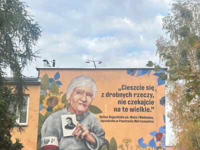 "Cieszcie się z drobnych rzeczy. Nie czekajcie na te wielkie" - taki napis jest na nowym, odsłoniętym dzisiaj w Warszawie muralu. Przedstawia on Halinę Rogozińską, pseudonim "Niebieska", uczestniczkę powstania warszawskiego. Dzisiaj pani Halina obchodzi 99. urodziny. Mural jest urodzinową niespodzia...